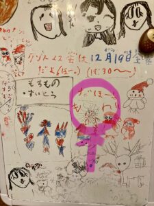 ピンクで囲んだ部分、幼稚園の子が描いてくれました。