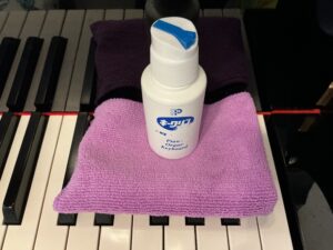 ピアノはマイクロファイバーのタオルでお手入れしてあげるとキレイになる。